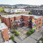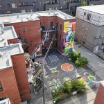 CONNEXION is the third mural in our triptych. In partnership with the Fondation pour la langue française, this mural contributes to the revitalization of this specific area, located in the heart of the Parc-Extension district, close to a busy thoroughfare, Jean-Talon Street, on the outskirts of Mile-Ex and very close to the MIL Campus of the Université de Montréal.