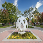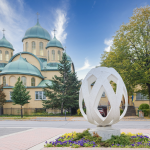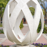 Resulting from a collaboration with the members of the Montréal Ukrainian community, the sculpture by Giorgia Volpe celebrates the community’s cultural traditions. The work is composed of interlaced ribbons deployed in a three-dimensional open weave. The shape of the sculpture is inspired by a pysanka (from the verb pysaty, “to write”), a gift represented by an egg painted with numerous symbols and signs. Ukrainians continue to practise this ancient tradition in a perpetual cycle of transmission from generation to generation. The motifs on the egg’s ribbons refer to oak leaves; they were chosen by the members of the Montréal Ukrainian community to represent patience, strength, and longevity. The work evokes the notion of identity and, through its symbols, invites a gathering of Ukrainian culture in Montréal.