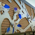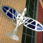 Sporting illuminated wings, flying creatures work together to construct a nest with mechanical pieces gathered from here and there. All the wings have a lighting system that flashes off and on, each following its own rhythm. The lights are a universal language shared by all the hybrid specimens in the mural. In order to communicate and evolve with one another, don’t we need to come together and understand one another?
