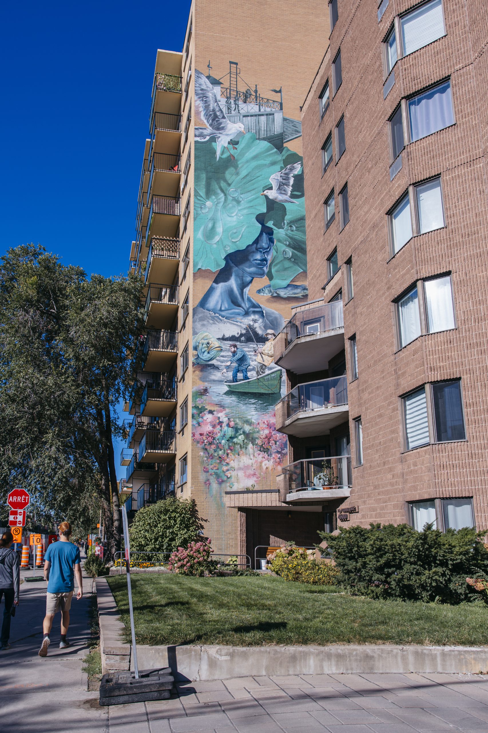 Born in Lyon, Dodo was initiated to art at an early age, spending countless hours admiring the rich architecture of his native city. He spent his teenage years in the south of France, where he developed his artistic knowledge and taste for graffiti. He studied Fine Arts in Cannes and presented his first shows in galleries. In need of a challenge, he decided to pursue his career in Canada in 2010. In Montreal, he got carried away by the city’s creative atmosphere and found a real family within the Ashop and K6A crews, two multidisciplinary collectives. Through these connections, he developed his own style and created his own universe, blending aerosol painting with watercolors. He is constantly in search of innovating, as much in his technique as in the choice of his subjects. He creates artworks that combines the figurative and the imaginary. His work takes the public into a surrealistic universe, both romantic and oneiric, that exudes an edgy sense of humor with his own poetic touch.