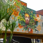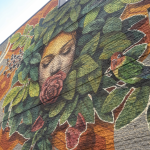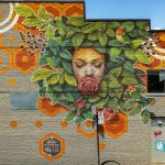 Executed with remarkable technical skill on a textured brick façade, this mural by Sophie Wilkins, assisted by Anik Favreau, blends seamlessly into its surroundings. The work radiates a deep sense of calm and evokes universal values such as nature, love, trust, and respect.