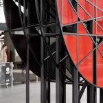 Perfectly centered and symmetrical, contrasting with the right angles and transparency of the station, Perspective divides and organizes space. Its grid-like structure offers different framed views. The artwork’s shape, pattern and materials are inspired by the formal elements of the station and allow it to blend in harmoniously.