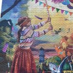 This painting highlights youth. A young girl hits a piñata while a young boy on a bicycle chases a pigeon. The dynamism of the protagonists, combined with an explosion of confetti and other recreational accessories, aims to intensify the festive atmosphere of the neighborhood.