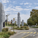 Véritable point de repère dans le paysage, Fontaines est une œuvre monumentale constituée de trois sculptures ajourées en aluminium. Chacune se dresse sur une des trois portions de terre-plein végétalisé de la rue Saint-Grégoire, devant l’avenue Christophe-Colomb. L’œuvre dynamise l’entrée nord du parc Sir-Wilfrid-Laurier, qui offre à la fois un lieu de convergence pour la circulation piétonne, cycliste et routière et un espace symbolique de fraîcheur pour la population montréalaise.
