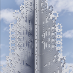 Pour la réalisation des formes sculpturales, l’artiste s’est inspirée des langages esthétiques distincts du style Art déco et du Bauhaus, précisément de la linéarité et de l’approche géométrique des formes. Le dessin stylisé a été ensuite reproduit sur huit panneaux assemblés en un point central, ce qui confère aux sculptures leur tridimensionnalité.