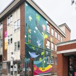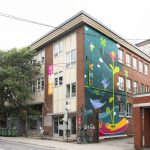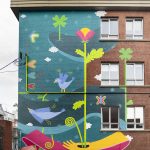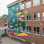 La murale « Grandir », réalisée par l’artiste Caitlin McDonagh, embellit le cadre de vie des femmes et des enfants vivant dans les habitations de la fondation Mères avec pouvoir. Cette fondation offre du logement à loyer modique, un service de garde de la petite enfance — le CPE du Carrefour, ainsi que du soutien social et professionnel à de nombreuses mères monoparentales. Ce sont ces mères, en quête d’un projet de vie, de développement personnel ou professionnel, qui ont partagé à l’artiste et à MU les idées qu’elles aimeraient retrouver dans l’œuvre murale.
