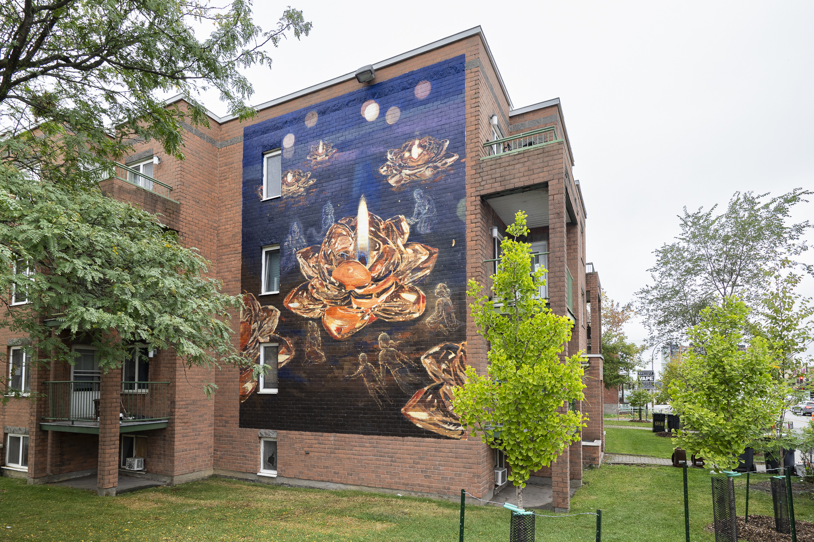 Initiée par les artistes Bryan Beyung et FONKi, tous deux issus de la diaspora cambodgienne, cette murale rend hommage à la mémoire collective et célèbre les parcours migratoires des communautés vietnamienne, laotienne et cambodgienne établies au Québec.