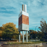 Dans cette œuvre commémorative de 14 mètres de haut, l’évolution de Pointe-Saint-Charles prend la forme d’une sédimentation de temps révolus. Installé sur un rond-point, le Monument à la Pointe s’observe à distance et produit une frontière entre l’espace dédié au transport routier et l’espace résidentiel.